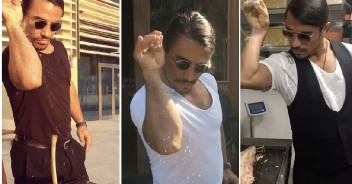 【31】@谷大白话 :之前一位土耳其大厨因俊美的长相和烤肉时撒盐的风骚动作而爆红网络,被网友做成各种表情包,人送外号"Salt Bae"。最近,奥斯卡影帝小李老师也光顾了他的饭馆,看到Salt Bae招牌手法后一脸满足。